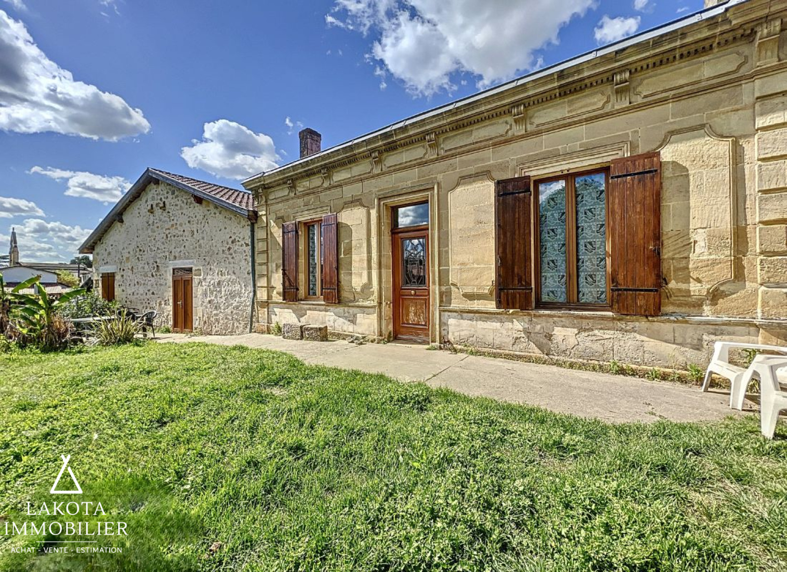 Lakota Immobilier vous présente en exclusivité à 5 min de La Brède, cette belle maison en pierre de 120 m2, idéalement située à proximité immédiate des écoles, à 5 min de la gare de St Médard d’Eyrans. Le jardin est entièrement clôturé afin de vous assurer tranquillité. La maison est composée d’une partie ancienne d’une belle hauteur comprenant un grand séjour cuisine, deux chambres ayant conservées des prestations anciennes telles que les cheminées. De l’autre côté de la maison, une extension plus récente propose une grande salle à manger, une chambre, une salle d’eau, buanderie et wc. Attenant à la maison, un chai en pierre d’environ 80 m² aujourd’hui utilisé en garage pourra être facilement transformé pour un studio étudiant, bureau, locatif…