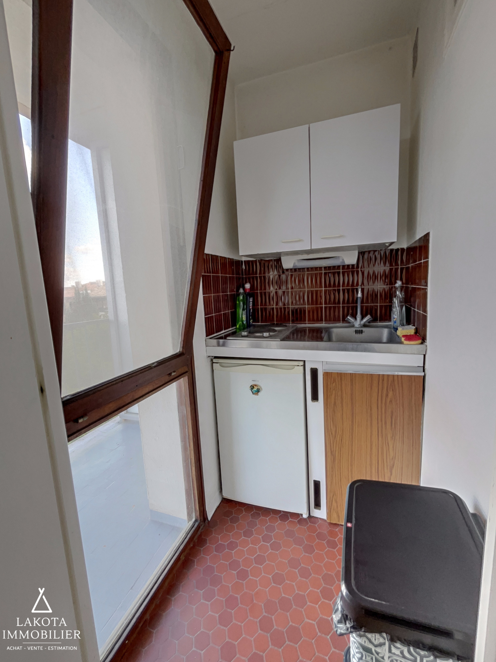 Vous y trouverez une belle pièce lumineuse, une petite cuisine et une salle de bain avec baignoire et WC. Un large baie vitrée vous donne accès à une agréable terrassse de 6m2.