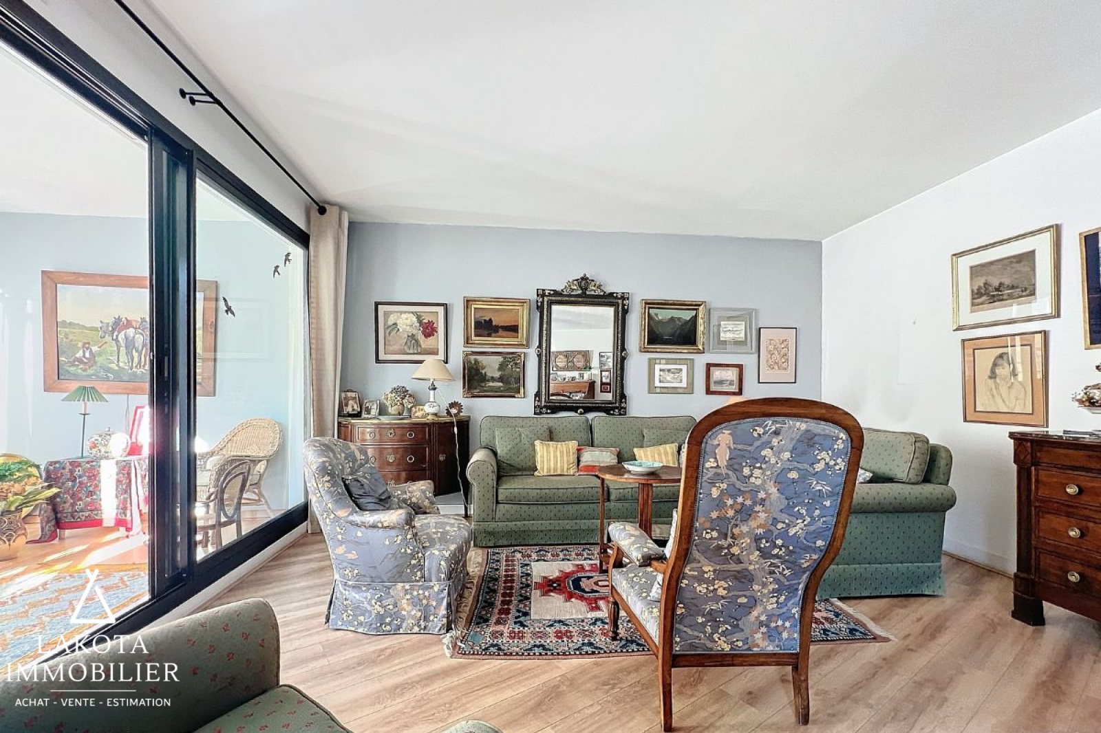 L’appartement très lumineux et confortable se compose d’une entrée conséquente aux nombreux rangements, d’une très belle pièce de vie de son jardin d’hiver orientée Sud, d’une cuisine indépendante donnant sur le balcon offrant une vue apaisante sur les jardins à l’arrière de la résidence, d’une chambre bénéficiant de sa propre salle d’eau et wc, d’une seconde chambre spacieuse, d’une salle de bain, et de wc séparés.